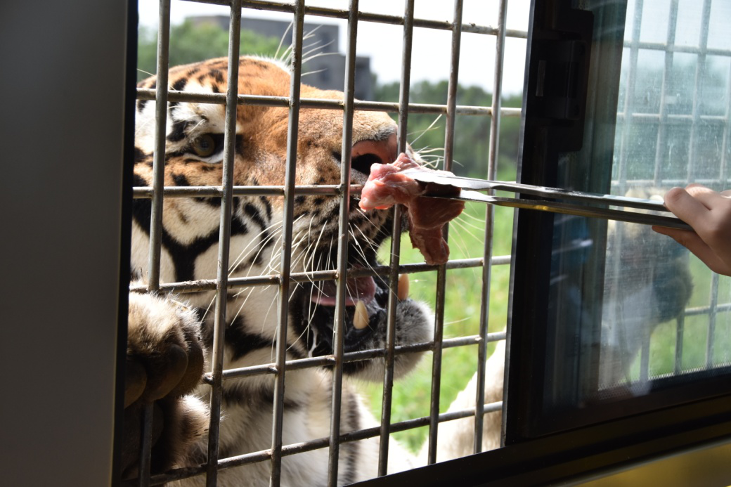 瞧瞧這鋒利的牙齒。據說一只成年老虎一天可以吃掉60斤肉食,老虎的食量也是夠驚人的!