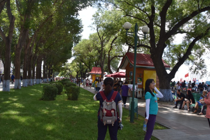 松花江畔開放式的斯大林公園,紫外線太強,在樹蔭下涼快一會兒。