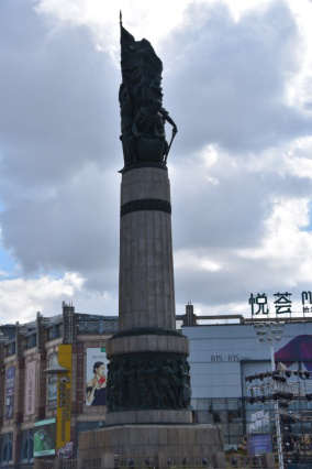 防洪紀念塔,緊挨著斯大林公園,也在松花江畔,后面是一片很繁華的商業區。
