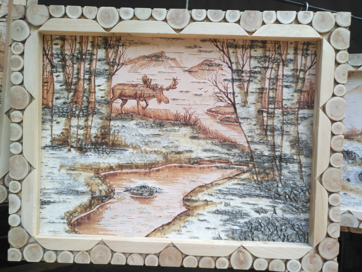 都說白樺樹通身都是寶。看,用白樺樹皮做的工藝畫,美輪美奐,讓人愛不釋手。