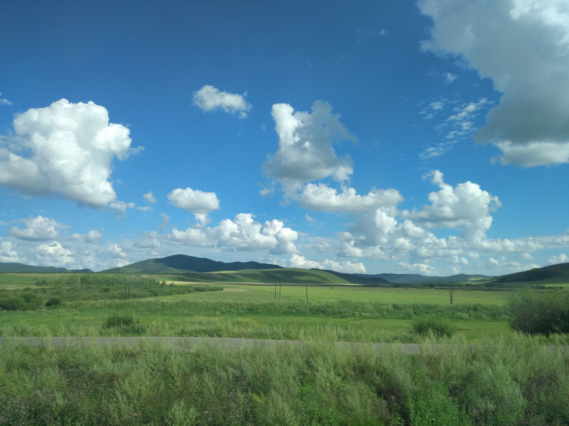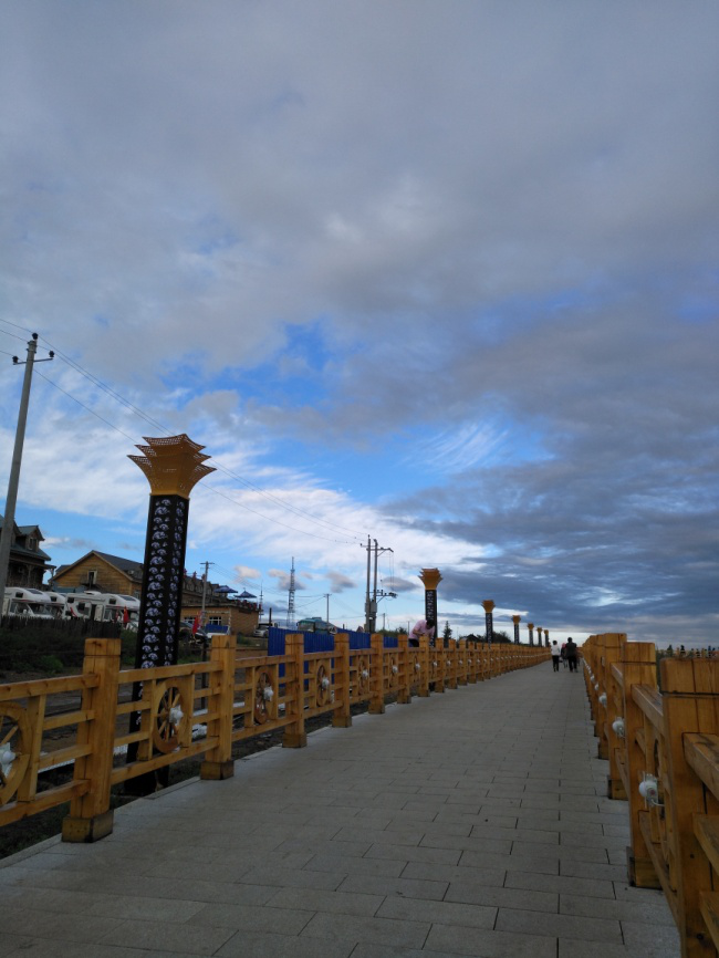 清晨的室韋小鎮界河廣場,天馬行空。許是被昨夜的雨神嚇到了,今天的太陽姑娘躲在云層里羞羞答答的,就是不肯露個全臉。