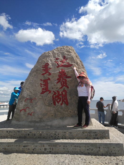 呼倫湖,又叫達賚(拼音lái)湖。湖邊的紫外線很強,我不得不全副武裝。同行的隊友說要離我遠一點,因為我看上去像是來搞恐怖活動的。
