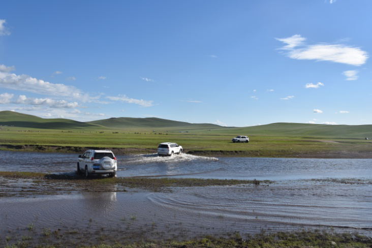 我們的車隊,穿過水域,最深處要沒過大半個輪胎了。