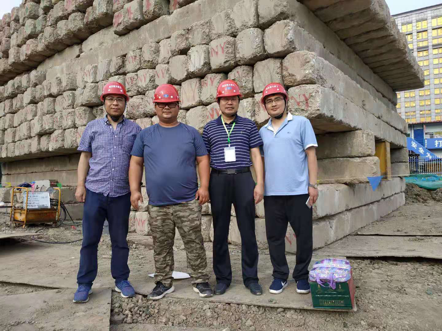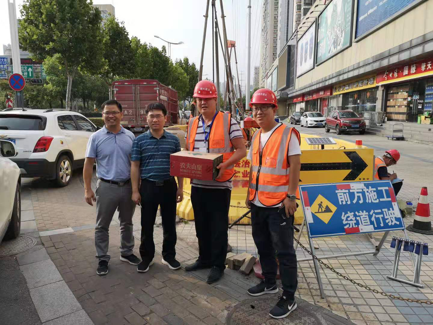 葉繼權(quán)、劉松一行對南京首建中心監(jiān)測項(xiàng)目、馬群綜合換乘中心公交停保場監(jiān)測項(xiàng)目、南部新城管廊監(jiān)測項(xiàng)目上的工作人員送上了防暑降溫用品、礦泉水等慰問品,關(guān)切地詢問了一線作業(yè)人員的生產(chǎn)生活情況(見照片5~7)。