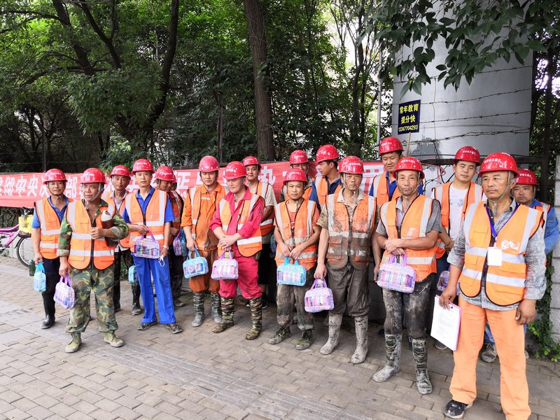 張志鋮、賀錦美一行對南京地鐵九號線勘察項(xiàng)目、南京仙林蘇寧廣場樁基施工勘察項(xiàng)目上的工作人員送上了防暑降溫用品、礦泉水等慰問品,關(guān)切地詢問了一線作業(yè)人員的生產(chǎn)生活情況(見照片8~9)。