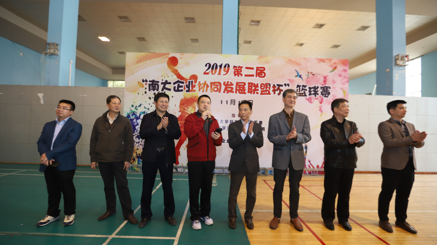 開幕式上,南大資產(chǎn)經(jīng)營(yíng)公司總經(jīng)理尹建康向前來參加比賽的領(lǐng)隊(duì)、教練員、運(yùn)動(dòng)員和裁判員表示熱烈的歡迎。他表示,本次籃球邀請(qǐng)賽既是展示參賽代表隊(duì)高超球技的一次盛會(huì),更是加強(qiáng)各企業(yè)之間橫向交流、增強(qiáng)企業(yè)凝聚力的一次聚會(huì),希望運(yùn)動(dòng)員們?cè)诨@球場(chǎng)上一展雄姿,“賽出風(fēng)格,賽出好成績(jī)”!